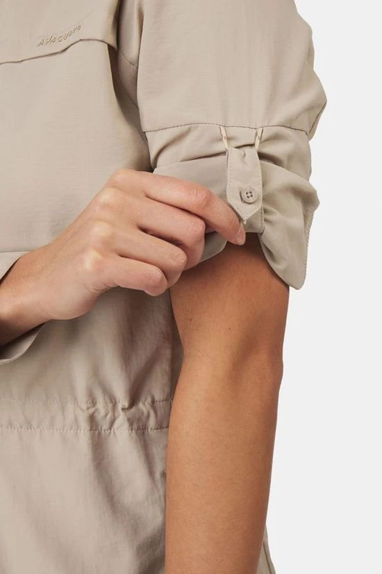 - Kraag kan omhoog staan om de nek te beschermen tegen de zon.