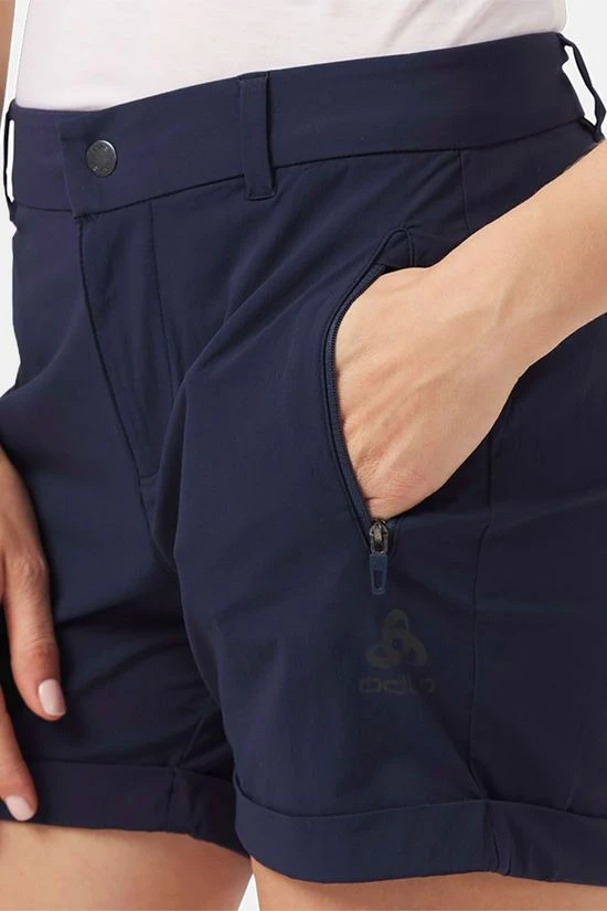 ODLO’s CONVERSION-short voor dames heeft een strakke pasvorm, is lichtgewicht en is altijd klaar voor avontuur. Hij heeft alles wat je nodig hebt, dus geen overbodige dingen. Deze technische en veelzijdige short combineert stijlvol retro-maatwerk met moderne prestaties en is gemaakt van een sneldrogende tweewegstretchstof, wat essentieel is voor wandelaars die in snel veranderende omstandigheden op uitdagend terrein actief zijn. In de twee voorzakken met rits kun je je essentiële spullen veilig opbergen. De short ziet er met de twee opgestikte achterzakken en omslag net zo goed uit als hij presteert onderweg.